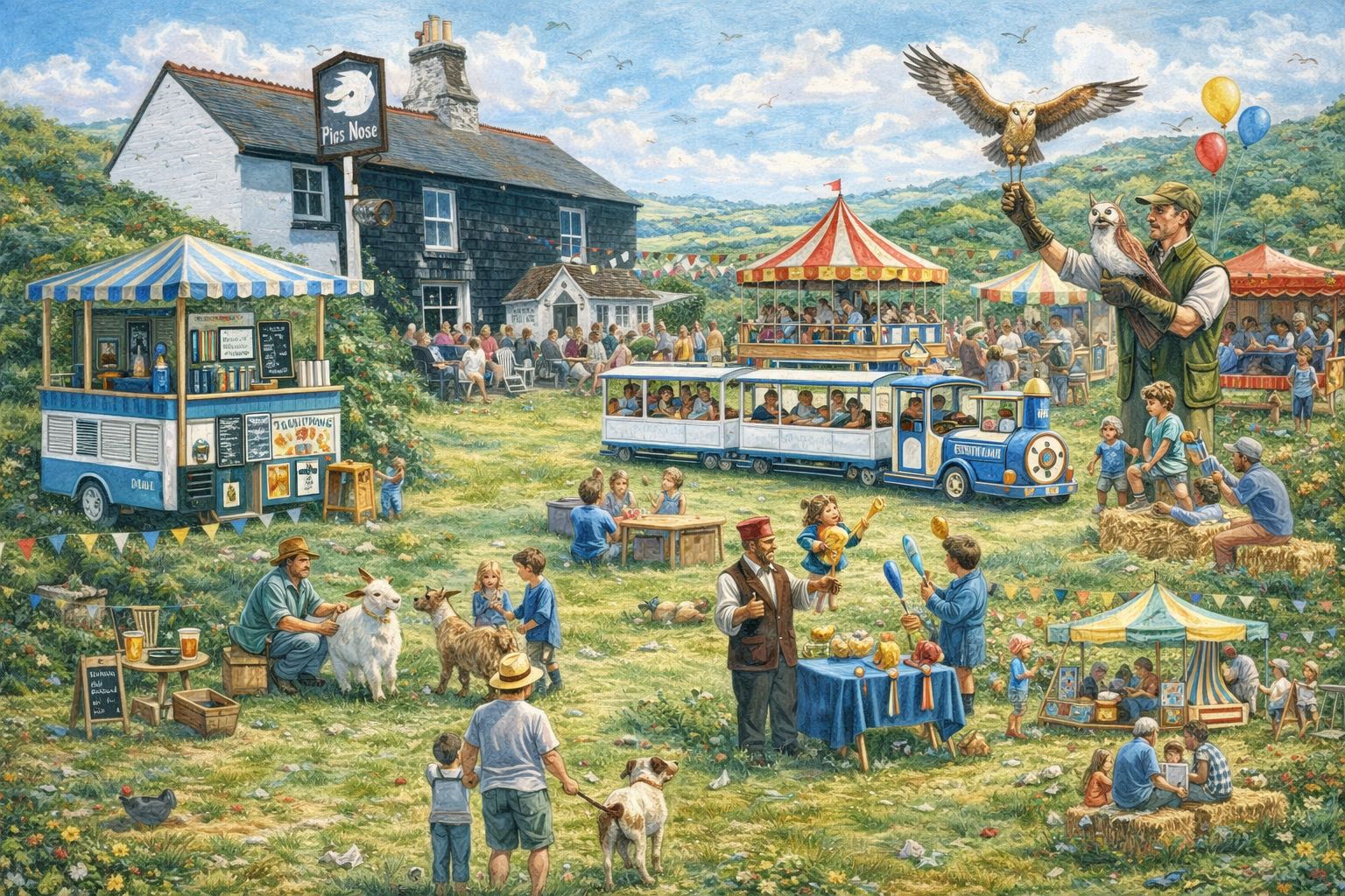 Located just off the Village Green a collection of games, rides and activities bringing family-friendly fun to the heart of the village, including a bouncy castle, children’s circus, and various fun fair stalls.